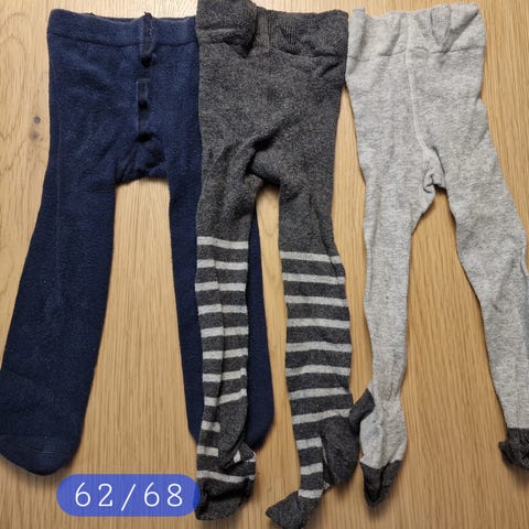 Vauvan sukkahousuja 2 paria koossa 62/68 ja puolipotkarit koossa 68.