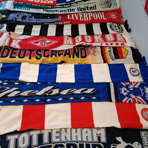 Myynnissä olisi 3 erillaista jalkapallo huivia ollut itsellä todella kauan jo koristeena.