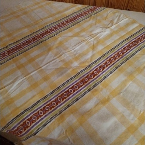 Pöytäliina ruutuinen. Käyttämätön. Väri Rosa. Eli vaaleanpunainen ja valkoinen.