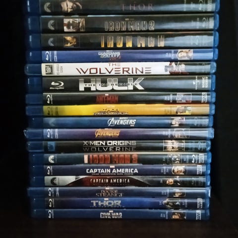 Kuvassa näkyy mitkä DVD elokuvia ja mitkä Blues ray