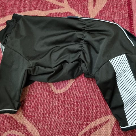 Konepestävä haalari uroskoiralle. Suojaa hyvin kuraantumiselta. Selän pituus 45cm niskasta hännäntyveen. Säkäkorkeus 41-46. Hyvät heijastimet.