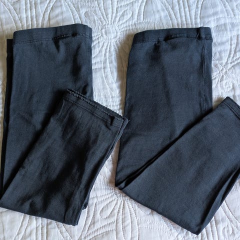 Mayoralin housut (joustavaa, paksumpaa kangasta) sekä paksummat leggingsit. Nappi-kuminauhasäätösysteemi molemmissa vyötäröllä. Beigeissä housuissa kauniit yksityiskohdat. Molemmat käytettynä meille tulleet. Beiget ei värin vuoksi kertaakaan meillä jalkaan kelvanneet, hyväkuntoiset. Siniset meillä kerran tai kaksi pidetty. Niissä paikoin aavistus haalistumaa ja pinnassa hieman pesuhaitua. Hinta yhteensä 4 euroa. Sijaitsee Tampereen ja Kangasalan rajalla Vatialassa. Postitus kuluja vastaan mahdollista. Laittele viestiä, mikäli löydät muutakin ostettavaa, yhdistelen posteja tarvittaessa.
