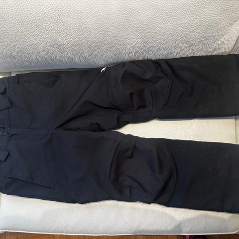 Laatuvalmistajan vedenpitävät housut. Vesipilariarvo erittäin korkea eli 10 000 millimetriä. Säädettävä vyötärö, heijastinteksti, avattavat lahkeet, jotka helpottavat kenkien pukemista. Polvissa kulumaa, mutta eivät ole puhki.