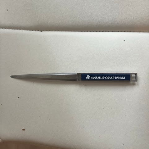 Kuvien hieno lähes sata vuotta vanha paperiveitsi / kirjeveitsi kiertoon.