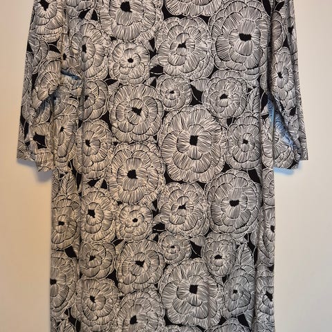 Marimekon mustavalkoraidallinen mekko. Malli Pikapika. Koko L. Paksua trikoota, 100 % puuvillaa.