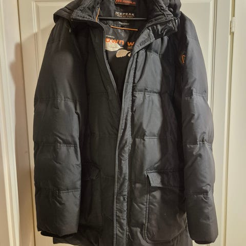Icepeak Talvitakki miesten koko 58 musta väri. Talvitakki on suunniteltu ulkoiluun kylmissä olosuhteissa. Takissa on vetoketjulliset taskut ja säädettävä huppu. Materiaalit tarjoavat suojaa kylmältä ja tuulelta.