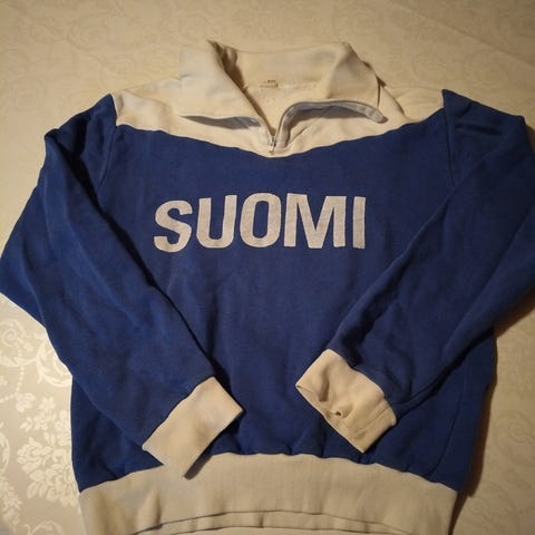 Myytävänä Suomi paita. Kainalo-kainalo mitta noin 50 cm.