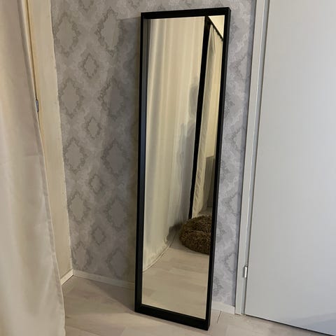 IKEA malliston aaltomainen peili. Peili on suunniteltu seinälle ripustettavaksi ja se tarjoaa modernin ja koristeellisen ilmeen tilaan. Materiaalina lasi, väri kirkas. Sopii erilaisiin sisustustyyleihin.