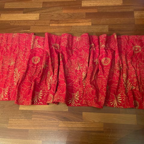 Myydään kuvassa näkyvä punainen verhokappa tankokujalla. Kunto näkyy kuvissa. Hinta:10€.