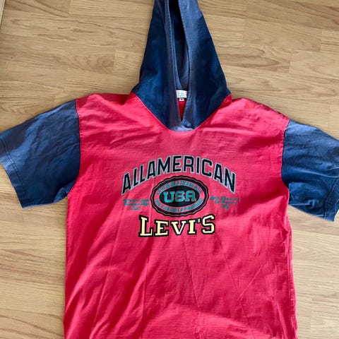 Klassinen huppari, jossa on etutasku (kengurutasku) ja huppu. Pieni punainen Levi's-lappu helmassa sivusaumassa.
