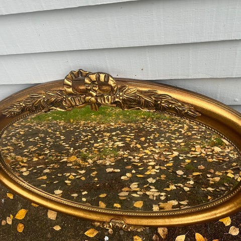 Myydään hyväkuntoinen kokovartalopeili koristeellisilla vaaleilla kehyksillä, ehjä ja naarmuton.