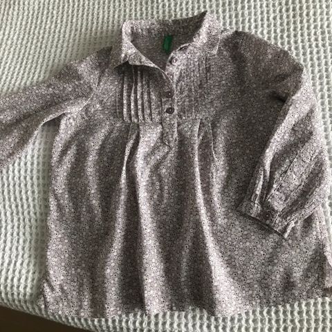 Benettonin msitokahvin värinenmekko. Koko 90. Mekko on valmistettu pehmeästä puuvillasta ja siinä on koristeellinen etuosan yksityiskohta. Sopii arkeen ja juhlaan.