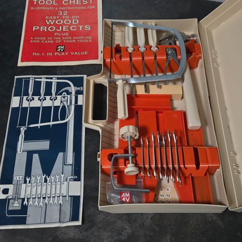 Vahat toimivat tyokalut, Vatupassi, pari polaa ja teriä sekä pari höylää.