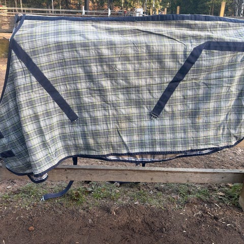 Kuin uusi, todella siisti Eskadronin kuivatusloimi 140 cm. Selkäosa vohvelikangasta ja muualta verkkoa. Irroitettavat mahavyöt.