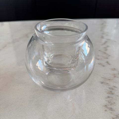 Pentikin Pallo-maljakko yhdistyneenä irralliseen tuikkuastiaan. Korkeus 10 cm, halkaisija 11 cm.