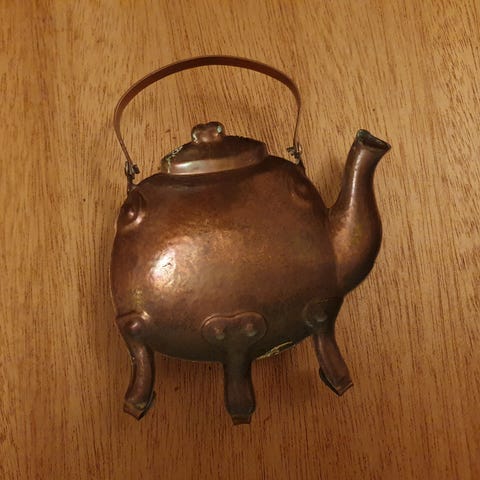 Pussillinen käsintehtyjä, pieniä kuparisia nauloja.
