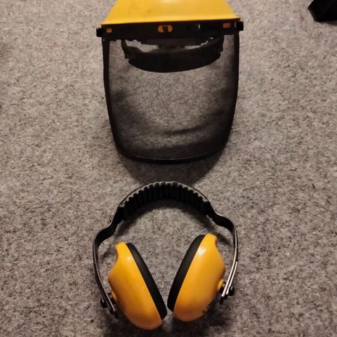 Suojavarusteet kasvosuojalla ja kuulosuojaimilla