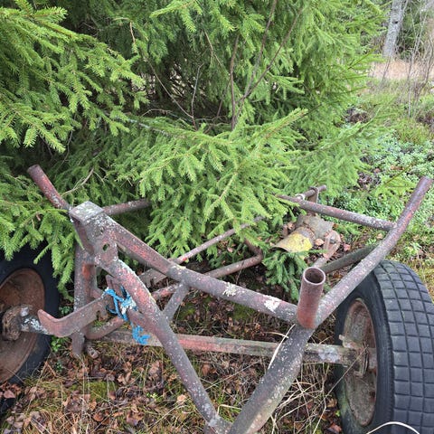 Seiväskaira, puuttuu kara, mikä porautuu maahan. Toinen kulmavaihde tulee mukaan, siitäkin puuttuu kara, akseli katkennut.