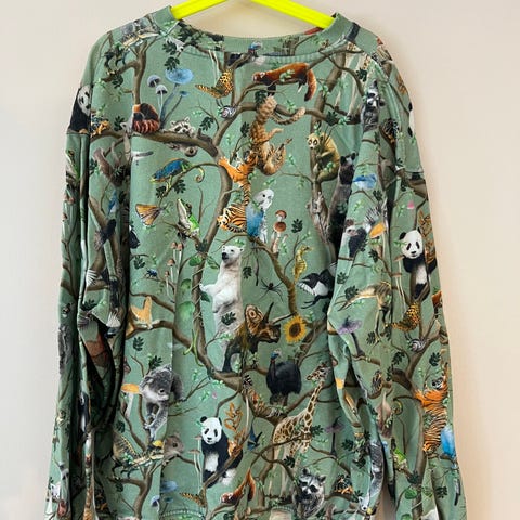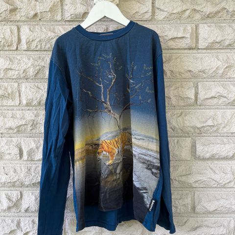Kotimainen Molo, harmaa collegepaita. Vyötäröllä, hihansuissa ja kaula-aukossa tummansiniset resorit. Sopii arkeen ja vapaa-aikaan.