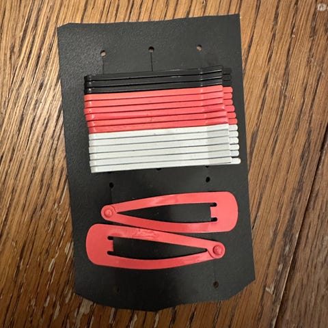 Kiiltokromattuja teräshiuspinnejä, ei käytetty.