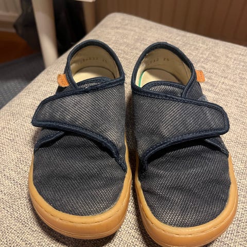 Froddo paljasjalkakengät, koko 25. Väri hieman kulahtanut, mutta muuten ehjät kengät, tarrat pitävät hyvin. Valmistajan ilmoittama sisämitta 17 cm.
