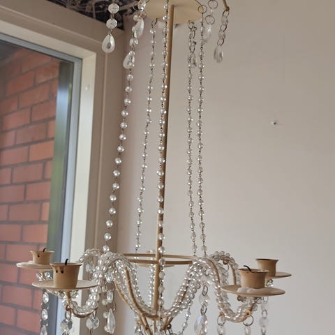 Hieno kuntoinen katto kynttelikkö 5-haarainen koristeineen ja kynttilöineen