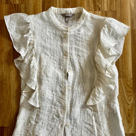 Ohut vaaleanpunainen kukikas röyhelöpaita, koko S/M