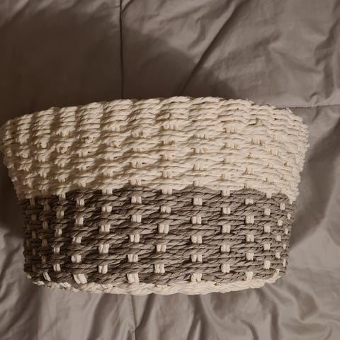 Monikäyttöinen kori. Korkeus n.30 cm, suuaukko 16.5 cm, pohja 20 cm. Pienet ripustuslenkit korin yläreunassa. Tästä saa vaikka lampunvarbostimen, malli on niin kiva. Nouto Tuusulan Hyrylästä sovitusti.