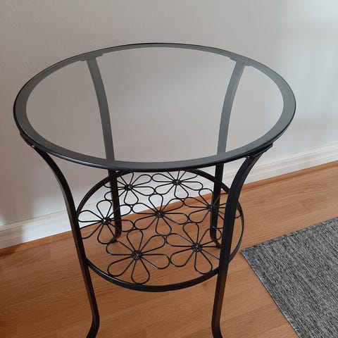 Lasimaljapöytä lasikannella ja metallijaloilla