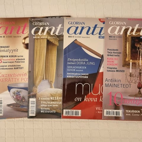 Laitan myyntiin kaikki Antiikki / Glorian antiikki -lehtien vuosikerrat 1994-2024. Myynnissä on (ilmeisesti yhtä vuoden 2001 lehteä lukuunottamatta) kaikki lehdet alkaen ensimmäisestä numerosta vuodelta 1993. Monissa vuosikerroissa on tallessa myös niiden mukana tulleet taidekeräilykuvat, jotka ovat enimmäkseen virheettömässä kunnossa. Kannattaa katsoa muutkin ilmoitukseni.