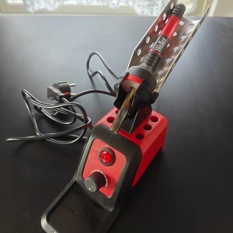 . Varustettu säädettävällä lämpötilansäädöllä ja juotinpidikkeellä, jossa on sieni juotinpään puhdistukseen. Soveltuu elektroniikan juottamiseen.
