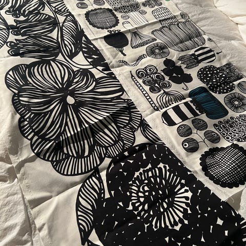 Myydään violetti-punainen kangaspala. Mitat noin 148cm x 128cm. Aika ohutta materiaalia. En osaa sanoa, oisko Marimekkoa.