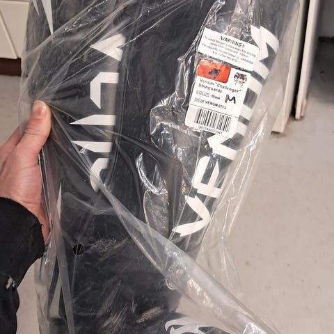 Pari kertaa käytetyt laadukkaat suojat.Venum Challenger Standup Shinguards, Black