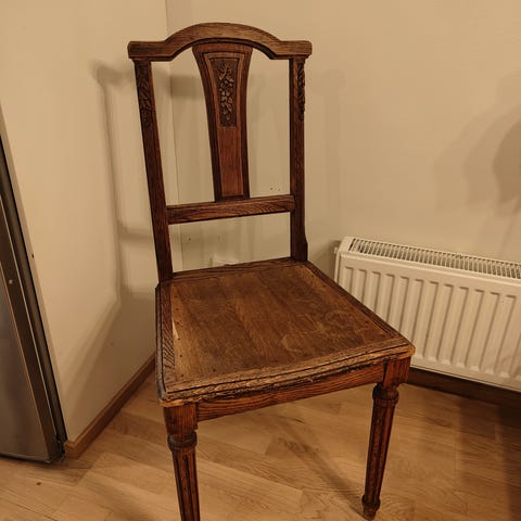 Lahden puutyö Oy:n hienot vanhat tuolit, 2x. Päällystetty Marimekko kuosilla. Myydään yhdessä.
