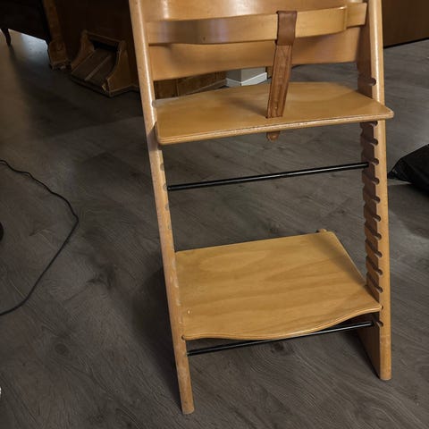Tuolissa on normaalia käytön jälkeä ikäänsä nähden, mutta yleisilme siisti ja täysin ehjä. Aidot vintage Stokke Balans -tuolit ovat erittäin kysyttyjä ja puurunkoiset mallit erityisen arvostettuja!