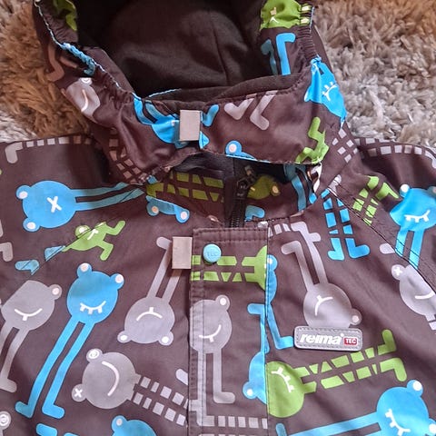 Siistikuntoinen vadelmanpunainen (ei pinkki) Reimatec välikausihaalari koossa 92. Melko reilu koko. Käytön jälkeä löytyy jonkun verran, nukkaa hupun resorissa ja oikein tarkasti syynätessä polvessa ja pepussa jotain pientä kulumaa. Testasin hanan alla kastelemalla että piti vettä polvista ja pepustakin. Hyvä vielä seuraavalle vaikka päikkyyn. Nouto Nokialta tai postikulut 8,90€ lisätään hintaan. Hajusteeton pesu, kissatalous.