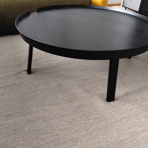 Vähällä käytöllä ollut Muuton keskikokoinen musta Airy-sohvapöytä. Naarmu pöydän pinnassa, näkyy kuvissa. Sen havaitsee käytössä vain, jos valo osuu tietyltä suunnalta. Huomioitu hinnassa. Ostettu Finnish Design Shopista ovh 425€. Vain nouto.