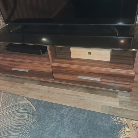 Kuvan mukainen TV taso. Hyvässä kunnossa ja tukeva.
