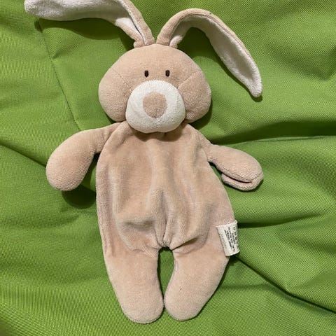 Vaaleanpunainen pupu, masussa kauniita unia teksti, tummunut uudesta, ehjä ja tahraton.
