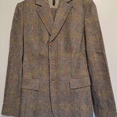 Tummanruskea vuoriton kuvanmukainen jakku, Maxine Paris merkintä , krepattu kangas koristeena niittejä xs tai s koko ,juhlava,postit ostajalle