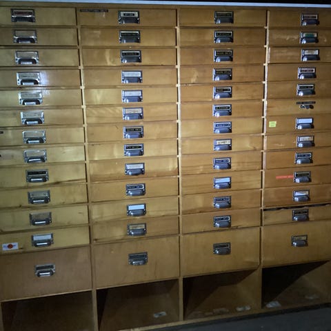 Musta metallinen kaappi, jossa kaksi ovea ja jämäkkä lukitussalpa. Sisäpuolella pehmustettu kangasverhoilu. Ulkopinta puupaneloitu.