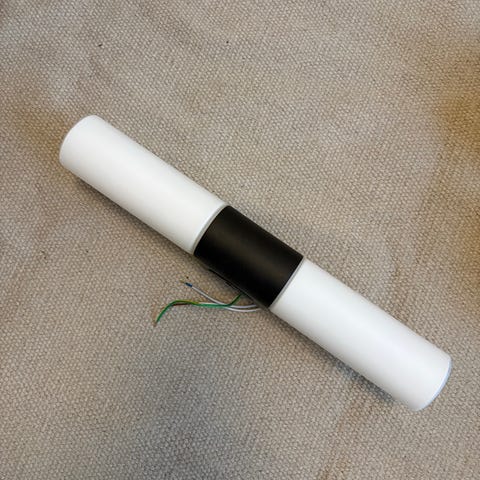 Punainen seinävalaisin, jossa kaksi joustavaa 2kpl metallista varjostinta ja kaksi valon säädintä. Valaisin on suunniteltu seinäkäyttöön ja siinä on virtajohto uusi mallinen seinäkosketin.