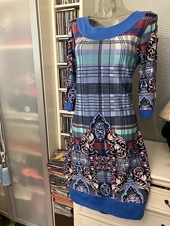 Uutta kotia etsii kuvan upea kauttaaltaan joustavaa polyesteriä oleva mustavalkoinen kuviomekko