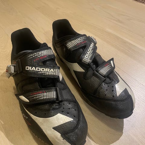 Kerran käytössä olleet Diador pyöräilykengät, klossit tulee mukaan. Koko 44