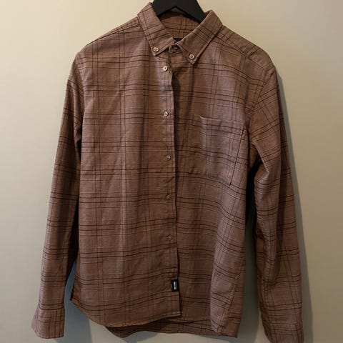 Ruskea tai kirjava Only&Sons flanellikauluspaita. Muutama kerta pidetty päällä. Ei käytetty hajusteita, eikä vahvatuoksuisia pesuaineita.