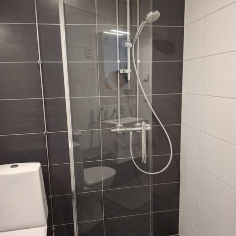 Lasinen suihkuseinän ovi mustalla kehyksellä