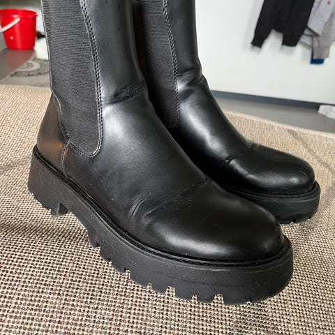 Beiget syyskengät. Koko 40, mutta pohjallisen pituus on 26 cm, mikä vastaa kokoa 41 (hieman iso 25,5 cm jalan pituudelle). Materiaali: keinonahka.
