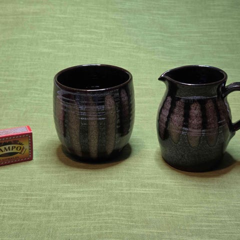 Vintage kermakko ja sokerikko englantilainen Hastings Pottery, Dennis Lucas