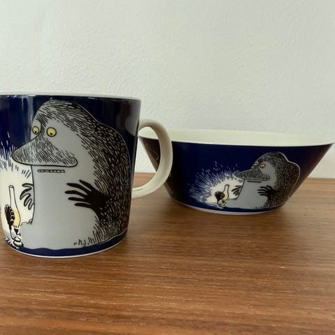Muumimuki ja kulho Mörkö Vanhaa tuotantoa