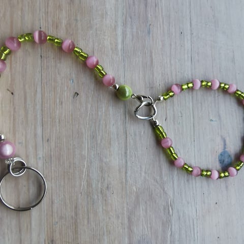 Uusi käsin tehty venyvä rannekoru violeteista lasihelmistä ja hopean värisistä sydänhelmistä. Yhteen sopivat korvakorut myynnissä erikseen.